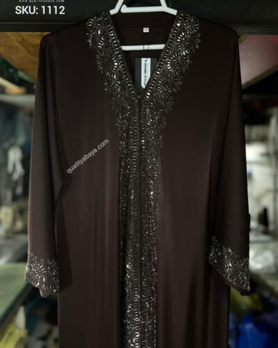 Wholesale Dubai Abaya design – Chocolate Brown color Anti crap fabric stonework abaya at factory prices
