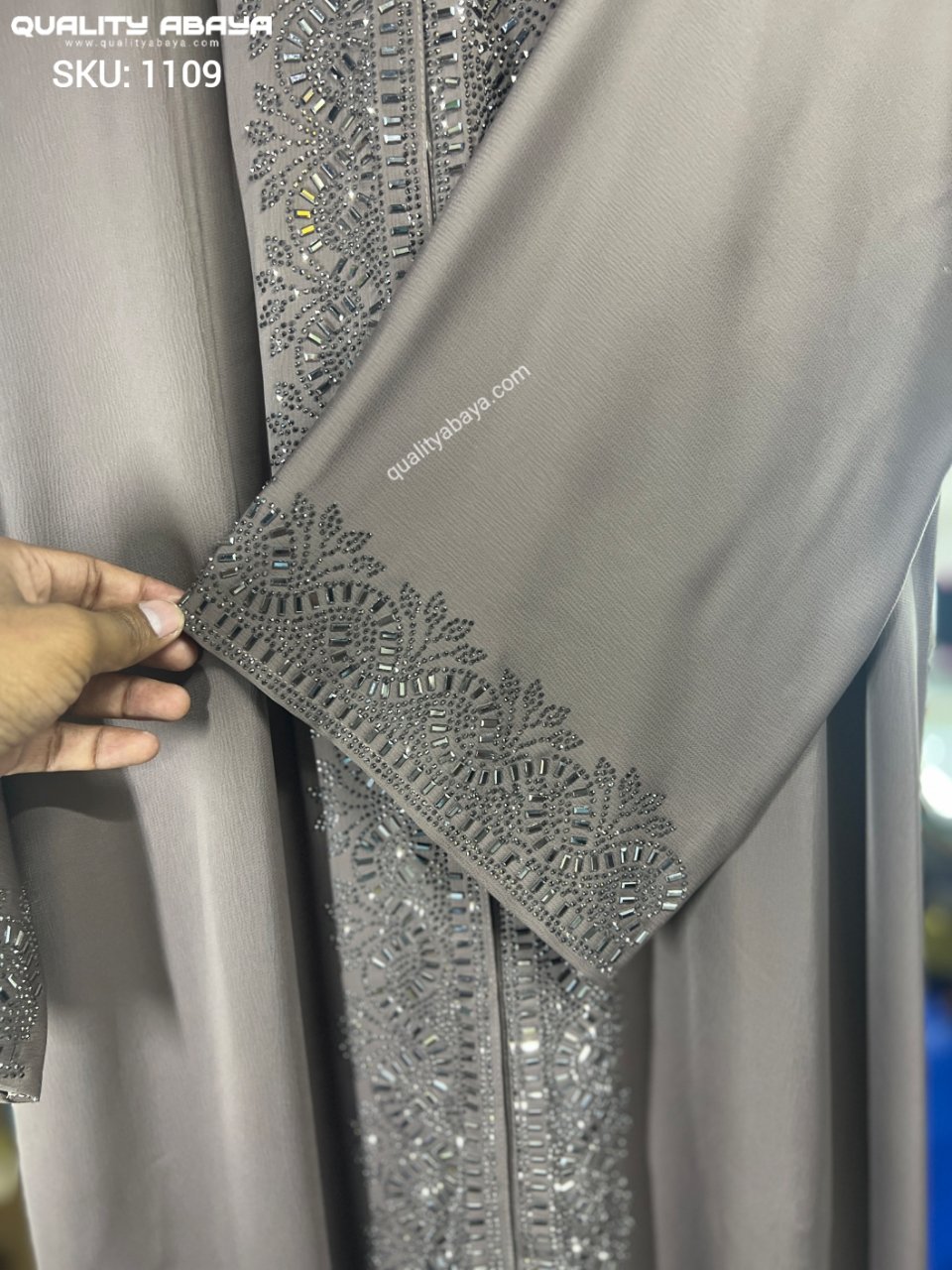 Wholesale Dubai Abaya Collection – Premium Anti Crepe Stonework Abaya at Factory Prices 1109
