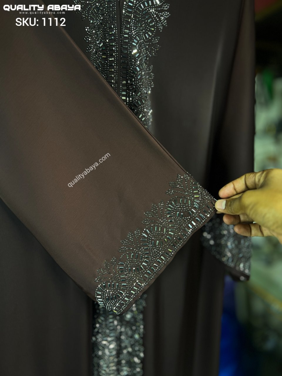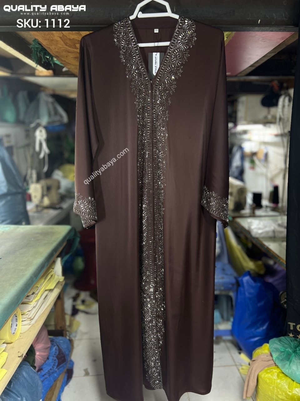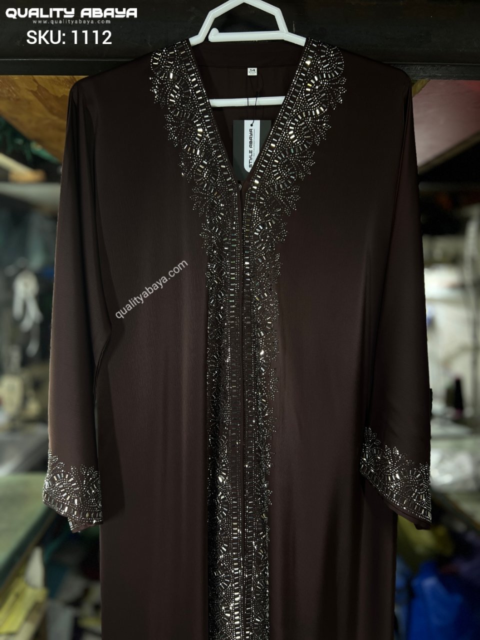 Wholesale Dubai Abaya design – Chocolate Brown color Anti crap fabric stonework abaya at factory prices