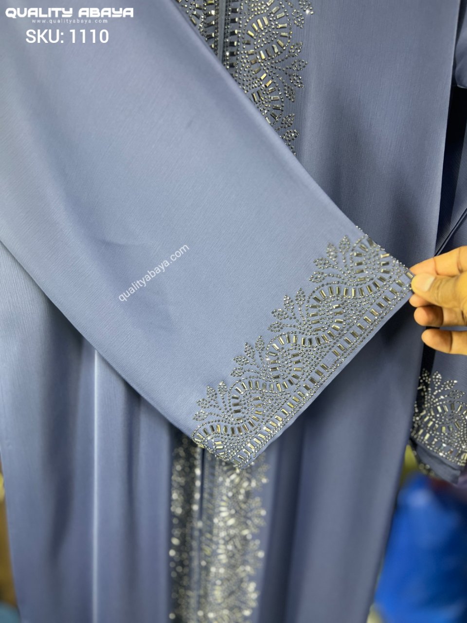 Wholesale Dubai Abaya design – Dusty Blue color stonework abaya at factory prices